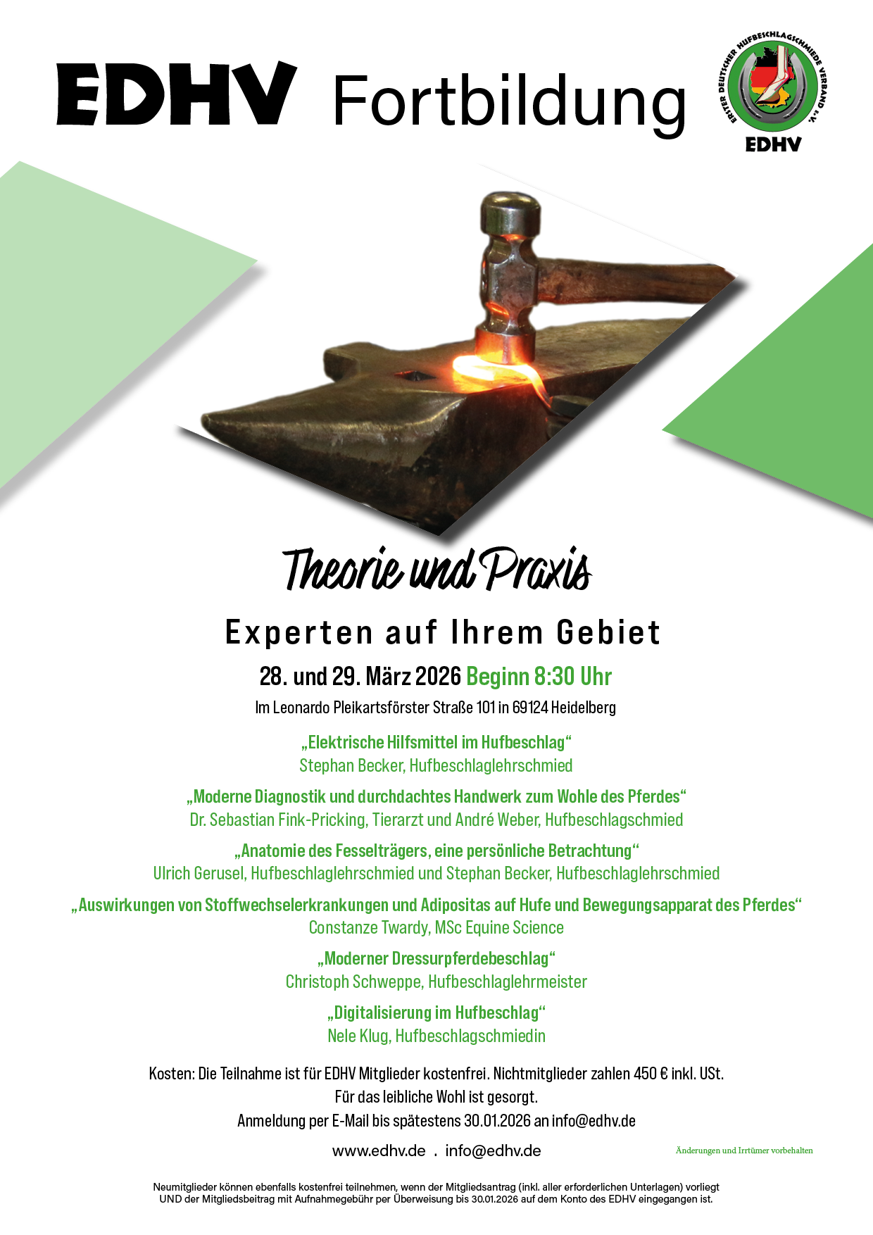 Hotel und Reisekosten gehen zu Lasten der Teilnehmer.