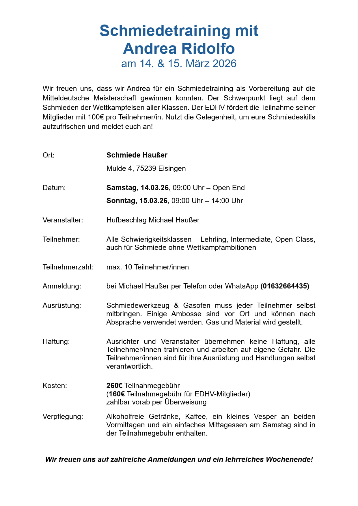 14.-15.03.2026 Schmiedetraining mit Andrea Ridolfo