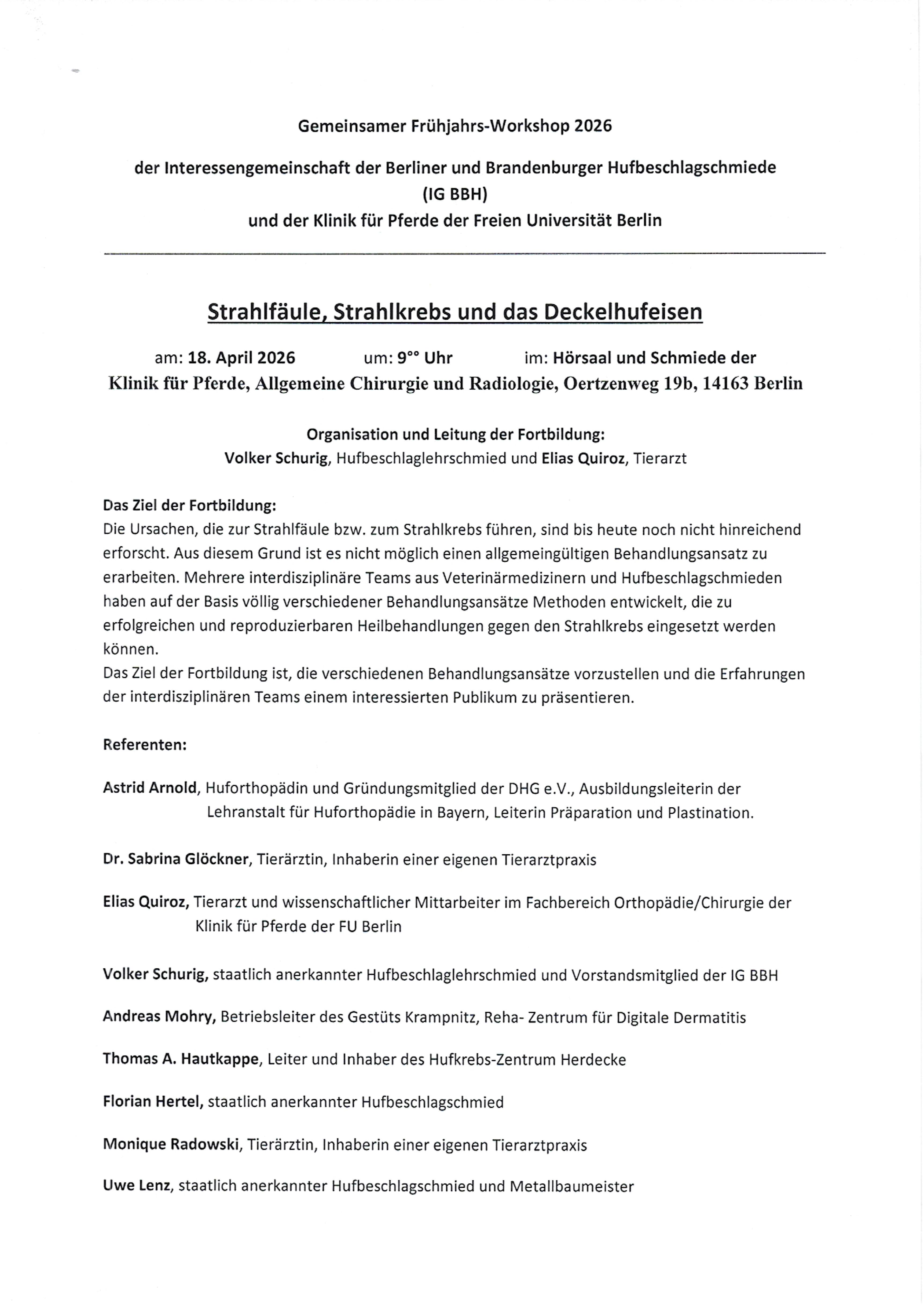 18.04.2026 Workshop "Strahlfäule, Strahlkrebs und das Deckelhufeisen"